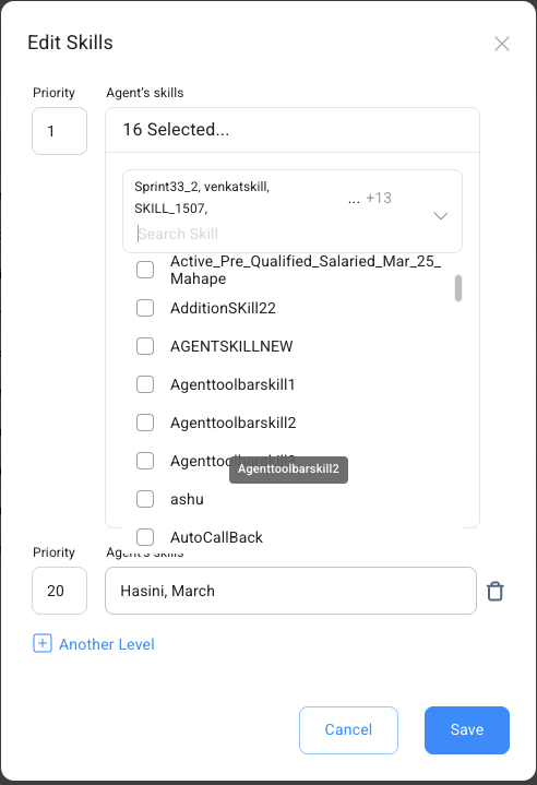 Agent Selection in Skill Configuration: Sub Admins now see improved UI with enhanced dropdown behavior and layout.