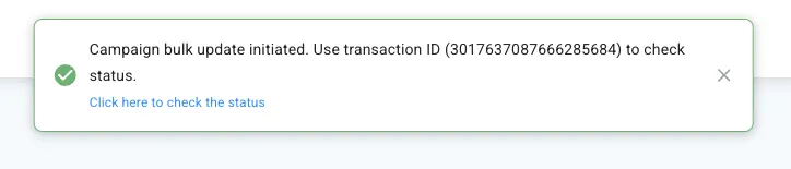 Bulk update is processed as an asynchronous operation, each taking up to 15 minutes.